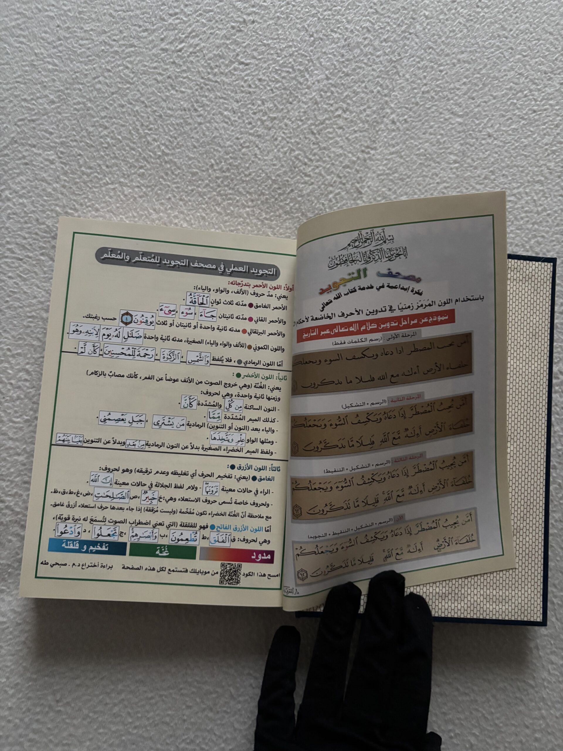 Idéal pour appliquer les règles de tajwid grâce à un code couleur intégré, pour une récitation plus fluide et respectueuse.