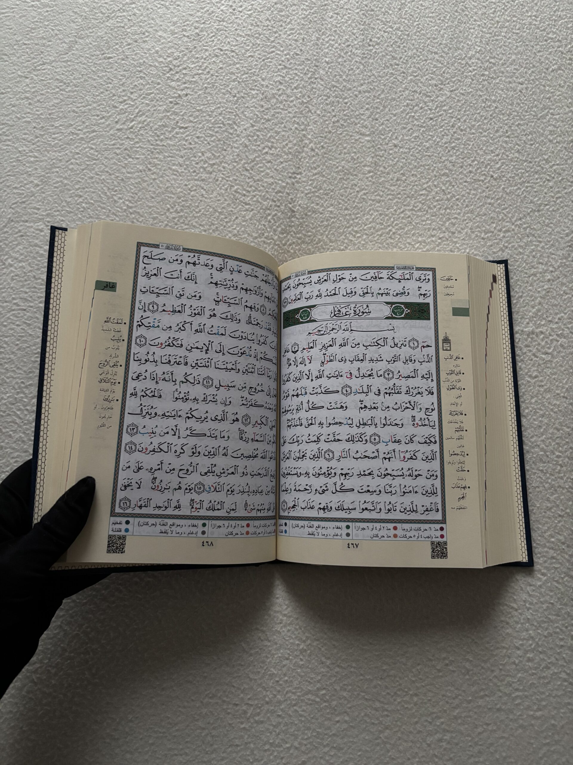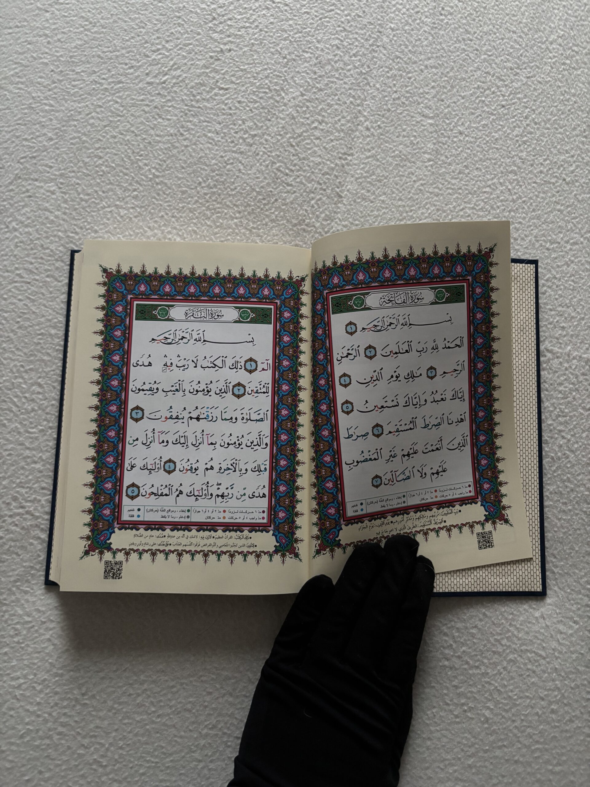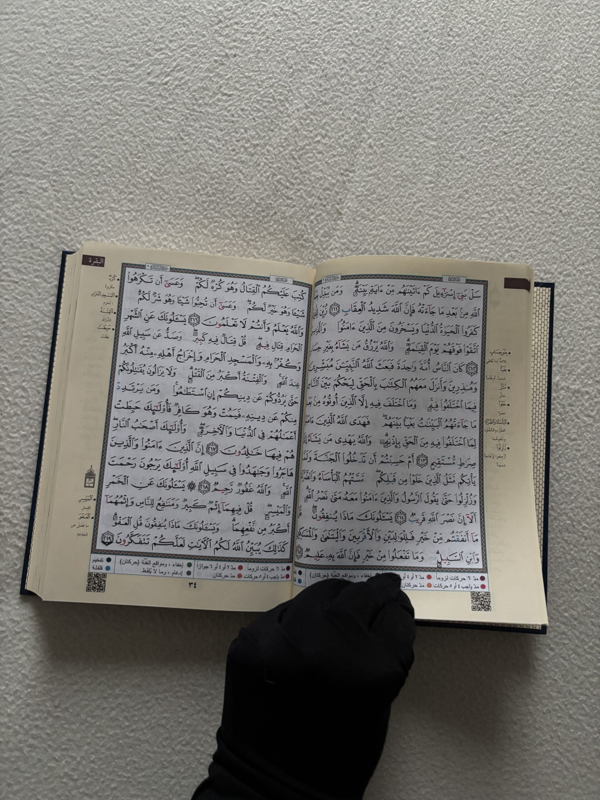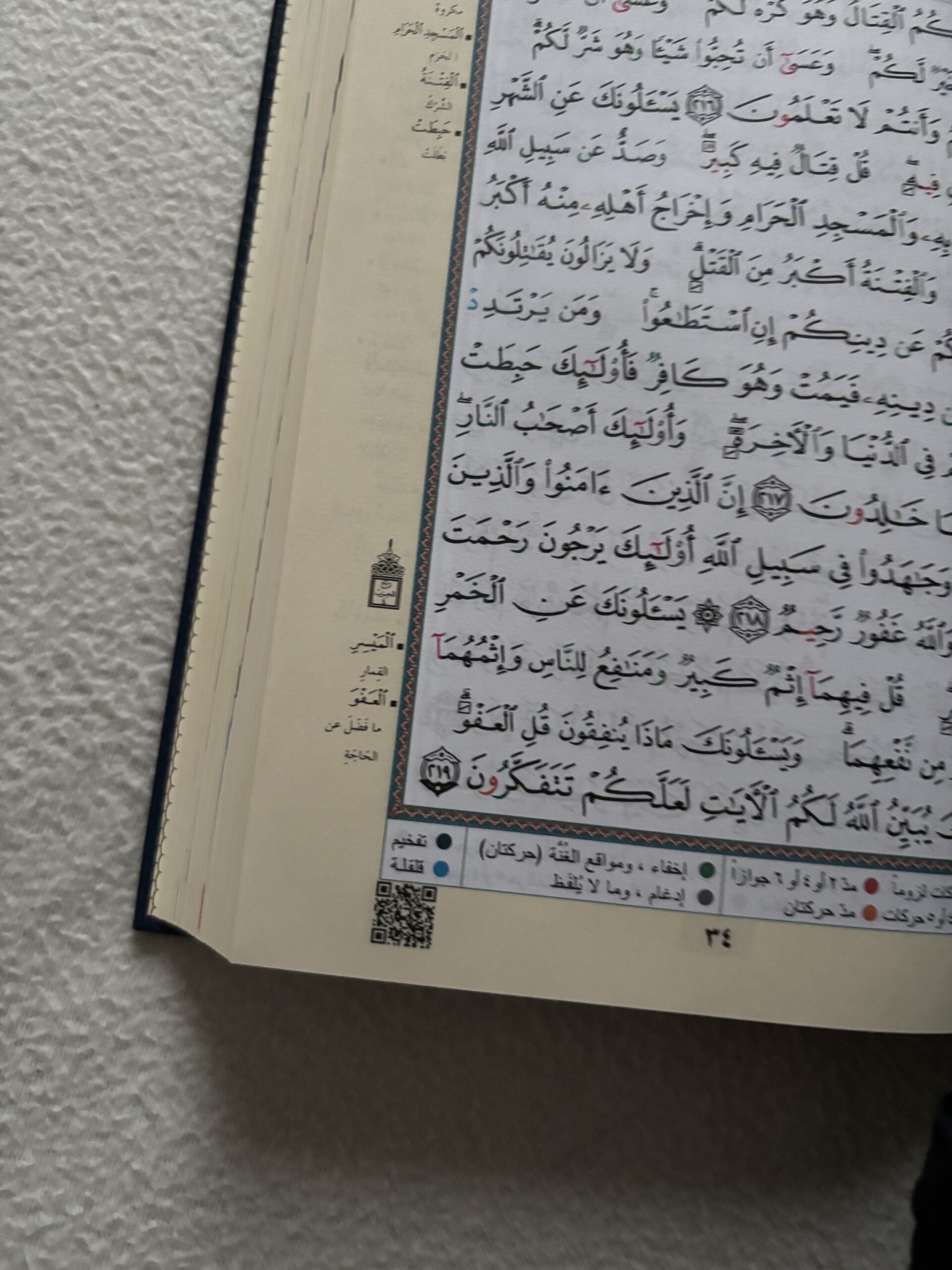 Chaque couleur correspond à une règle précise, et une légende explicative se trouve sur chaque page du coran avec le code couleur.