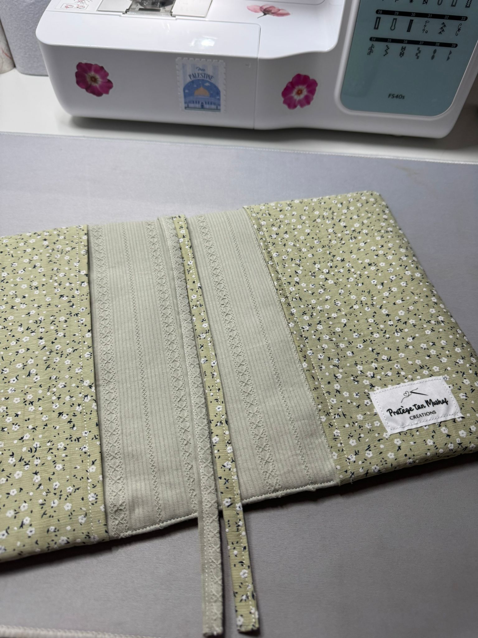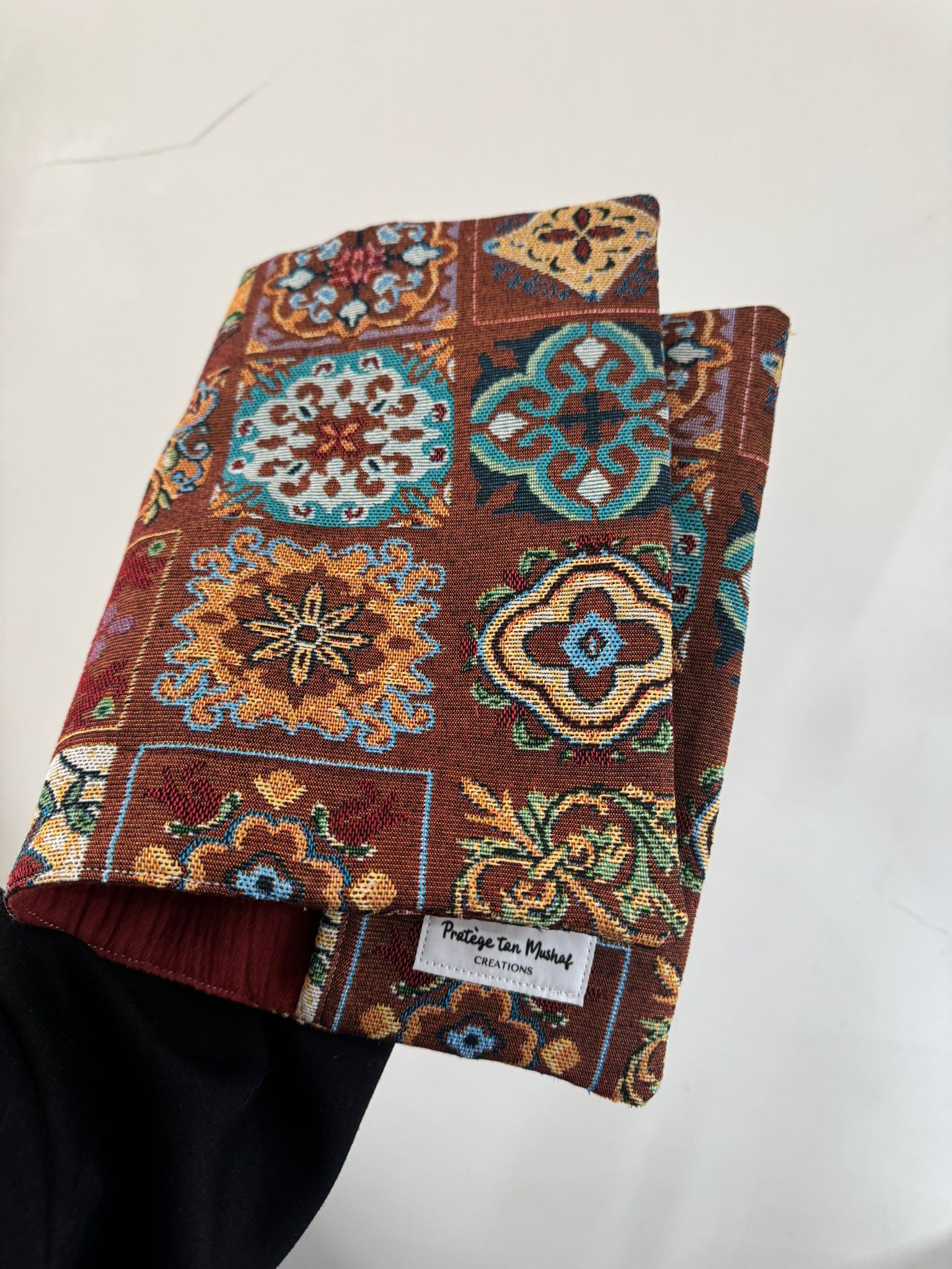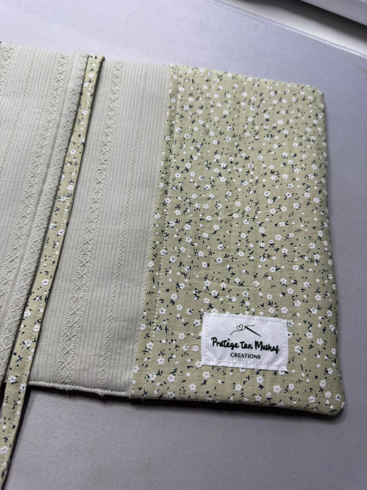 Protège Coran réversible, fait main et sur mesure.